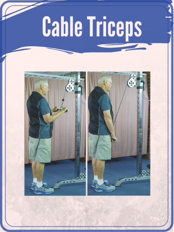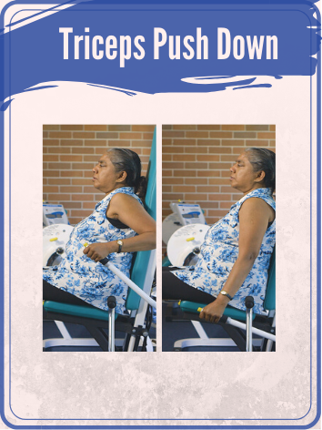 EXERCISE UPPER BODY Home Based Biceps Curl with Dumbbell Home Based Biceps Curl with Resistance Band Machine Exercises Cable External Rotation Machine Exercises Cable Pulley Row Machine Exercises Cable Triceps Machine Exercises Chest Press Home Based External Rotation with Dumbbell Home Based External Rotation with Resistance Band Home Based Forward Shoulder Raise with Dumbbell Home Based Push Up Progression Home Based Row with Resistance Band Machine Exercises Seated Row Home Based Side Shoulder Raise with Dumbbell Home Based Triceps Chair Dips Home Based Triceps Pull Down with Resistance Band Machine Exercises Triceps Push Down Home Based Wall Push Up